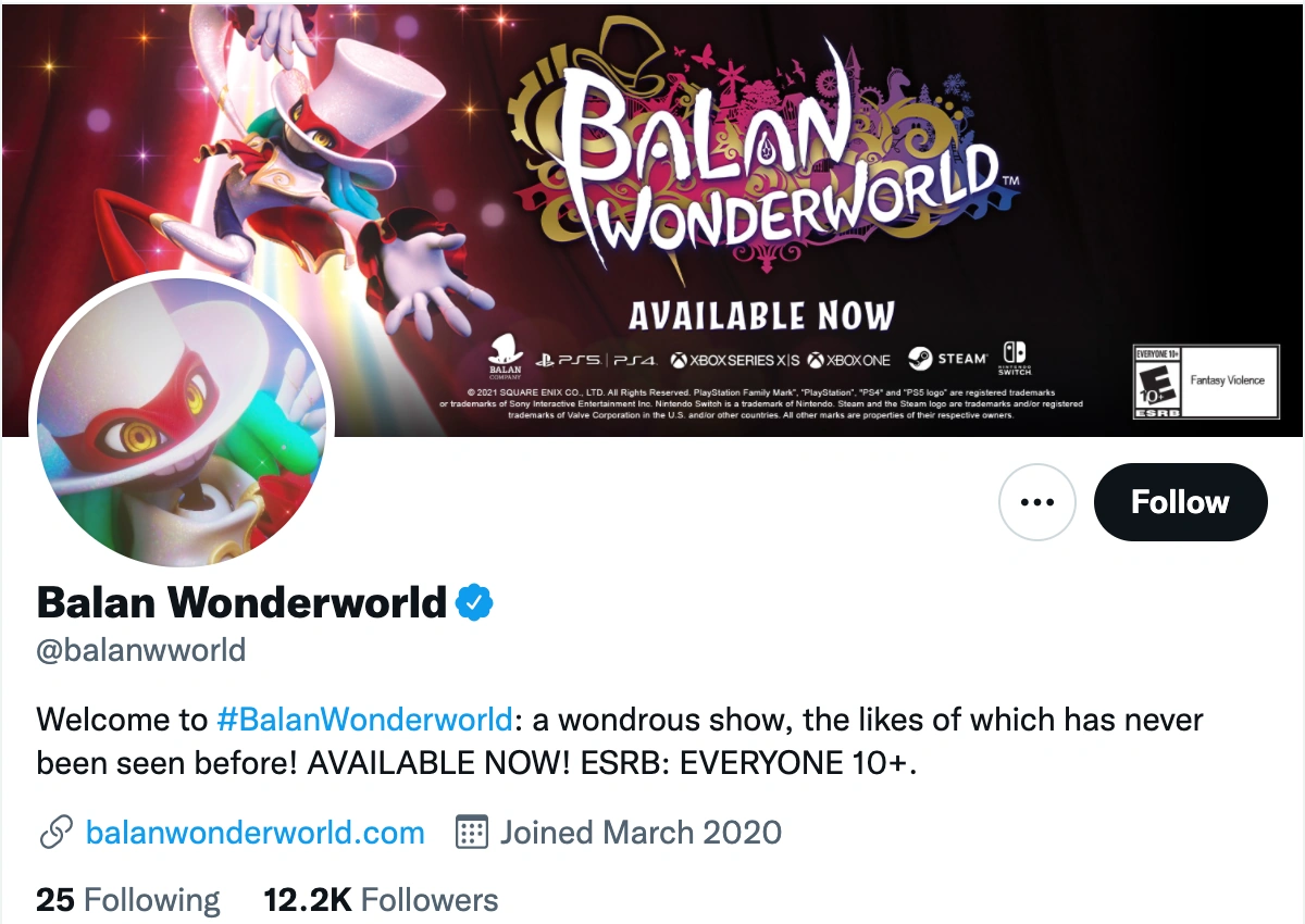 The Balan Wonderworld Official Twitter (@balanwworld) is a Twitter account made for Balan Wonderworld. It has not had any activity since June 23, 2021. There is also a Japanese version of the Twitter account.